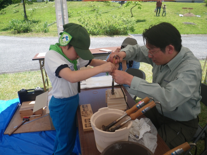 頭の体操をしながら組み立てて、最後の工程として自分で記念の焼印を押して完成です。