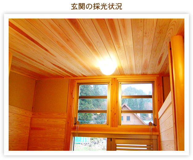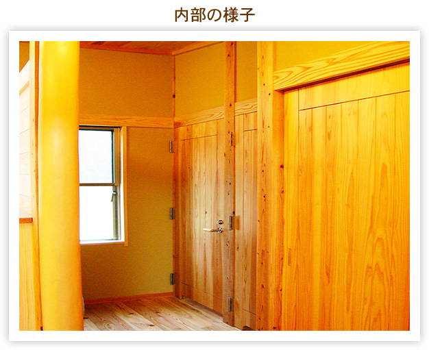 雪の多い地域ですので、構造材は太くたくましく特に太鼓落とし梁は身近に育った杉材をあえて使用し、その強さをアピールしています。