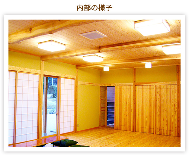 県産材、いや、より身近な地元材と地元の職人衆とのコラボを模索した「地材地住」建築物の第1号集会施設です。