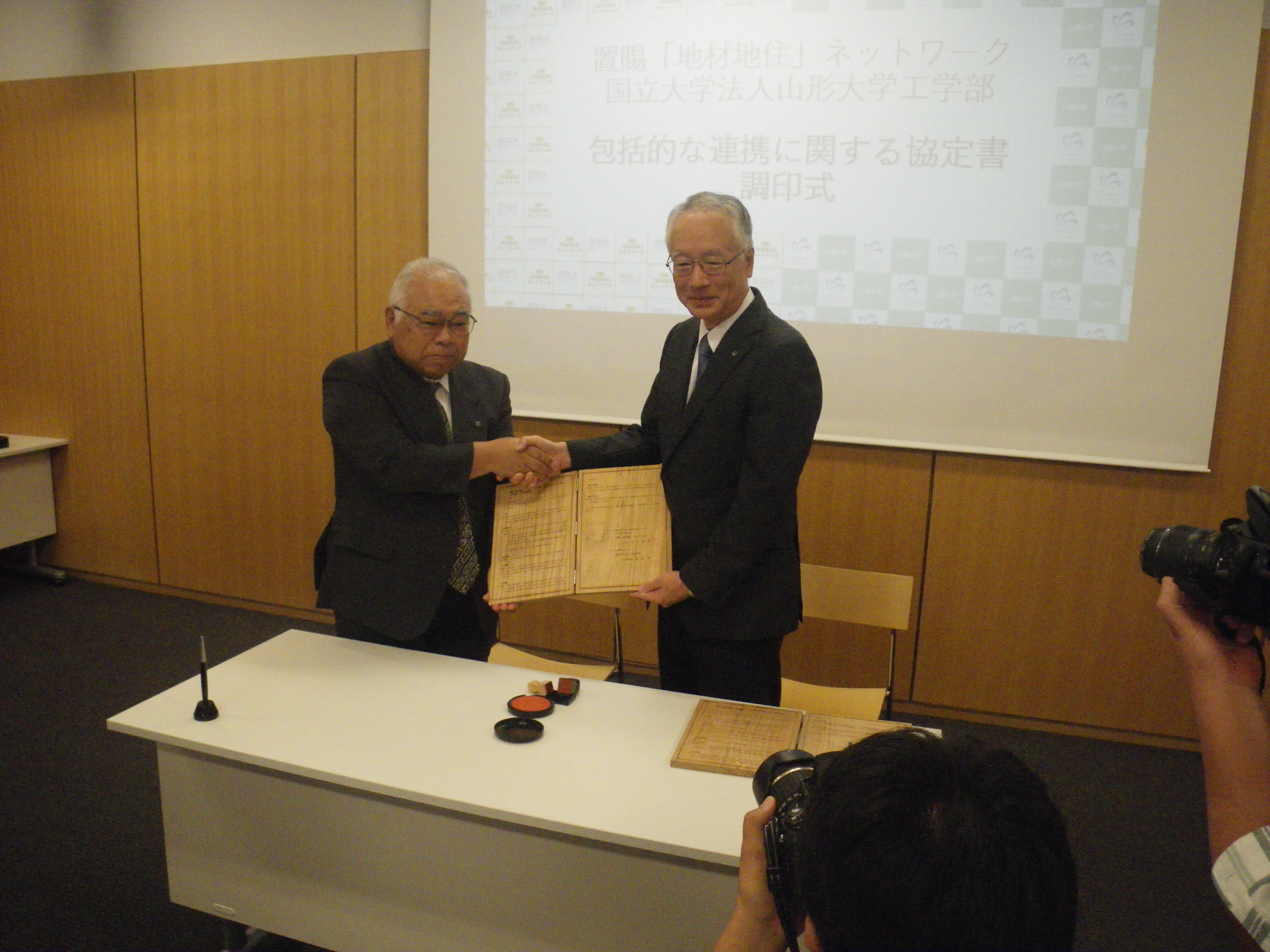 置賜「地材地住」ネットワークと国立大学法人山形大学工学部が連携に関する協定を締結しました。